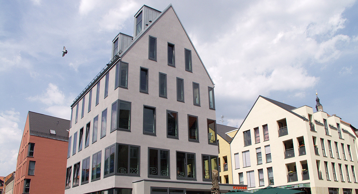 Im Jahr 2000 fand ein EU-offener Ideenwettbewerb für die städtebauliche Erneuerung des Gemüsemarkts Fulda statt, aus dem die Architektenkooperation Jörg Baumeister und Tobias Scheel aus Berlin als Sieger hervorgingen. Unter der Bauherrschaft des Siedlungswerks Fulda wurden wir bis einschließlich der Ausführungsplanung mit der Umsetzung der Wettbewerbsidee beauftragt. Geplant wurden 24 seniorengerechte Wohnungen, die im Rahmen des sozialen Wohnungsbaus für „betreutes Wohnen im Alter“ genutzt werden. In den Erdgeschosszonen entstanden zahlreiche Gastronomie- und Ladengeschäfte, die zusätzlich zum neu gestalteten Platz des Wochenmarkts den Rahmen für eine lebendiges Miteinander schaffen. 2004 wurde der Gemüsemarkt Fulda mit einer „Besonderen Anerkennung“ des Deutschen Städtebaupreises bedacht.