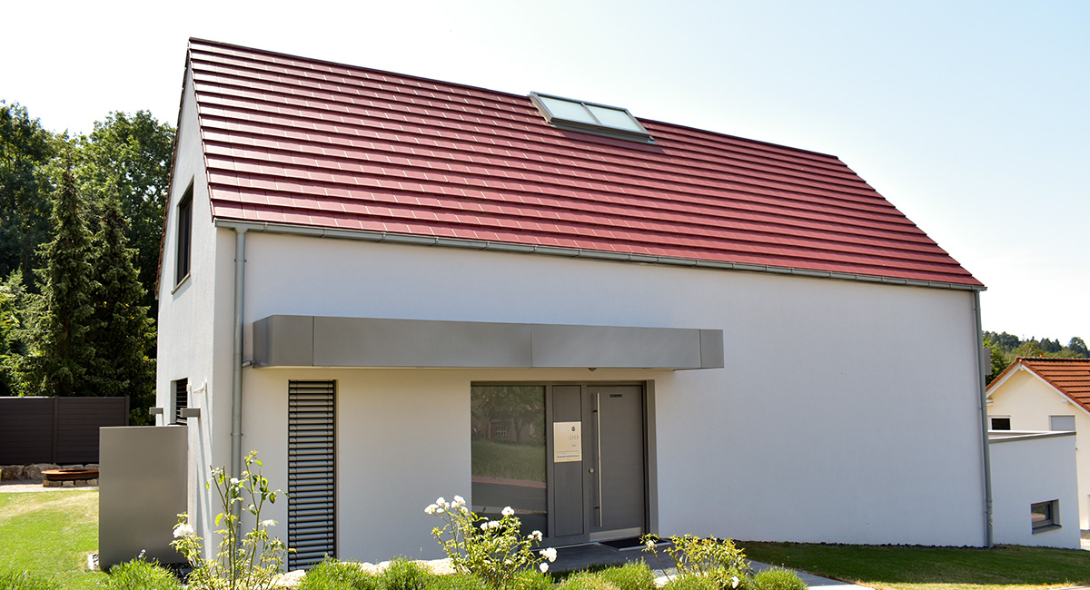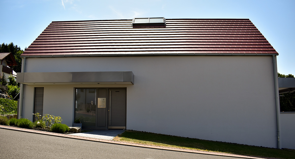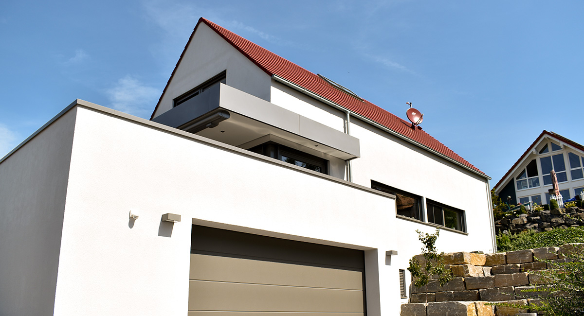 Grundstücke wie dieses beplant man nicht oft. Im Herzen der Rhön, dem Land der offenen Fernen, bewohnt seit 2018 eine zweiköpfige Familie dieses Wohnhaus. Offen und lichtdurchflutet präsentiert es sich auch im Inneren mit dem freien Wohn-Ess-Kochbereich im Erdgeschoss, und dem Ankleide- und Schlafbereich im Dachgeschoss. Immer darauf bedacht, den fantastischen Blick in Richtung Fulda einzufangen. Den genießt man nicht nur innen, sondern auch auf der riesigen teilüberdachten Sonnenterrasse über der Garage. Gäste sind willkommen, sie fühlen sich in ihrem eigenen Bereich im Untergeschoss wie zu Hause. Unsere Handschrift zeigt sich auch bei diesem Haus – wohl proportioniert mit originellen Gestaltungsmerkmalen.